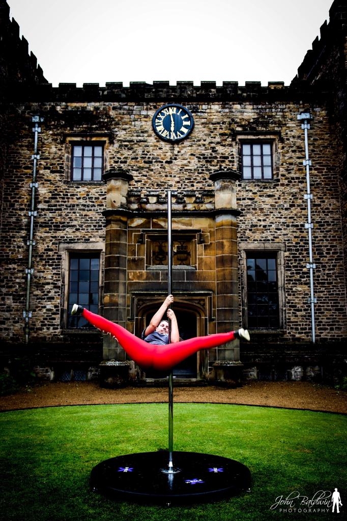 Graceful aerial hoops and silks performed on a secure free-standing rig